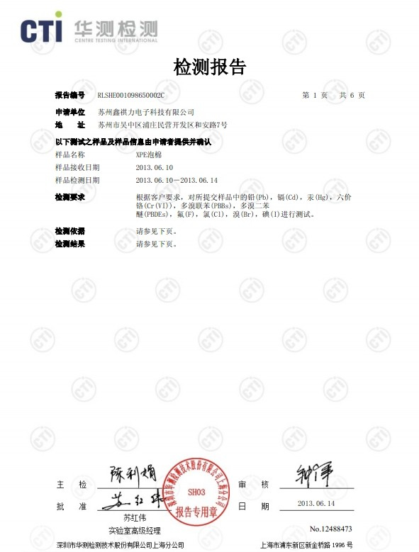 防靜電XPE泡棉檢測(cè)報(bào)告
